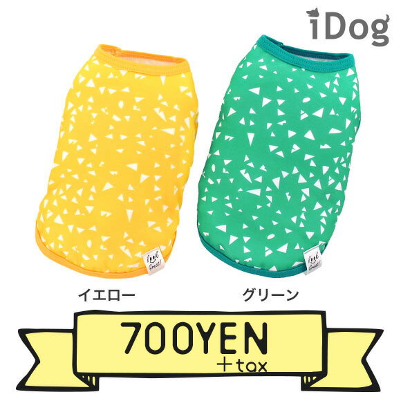 )【 春夏 犬 服 】 iDog トライアングルタンク アイドッグ 【 国産 犬の服 】 全2カラー 裏側 三角柄を散りばめたデザイン 子供服のような可愛さ 裾に付いたタグがワンポイント ビタミンカラーとポップな柄がキュート トライアングルのランダムさがたまらない 春夏のお出かけがオシャレに華やぐ1枚 トライアングル柄が散りばめられたタンク。