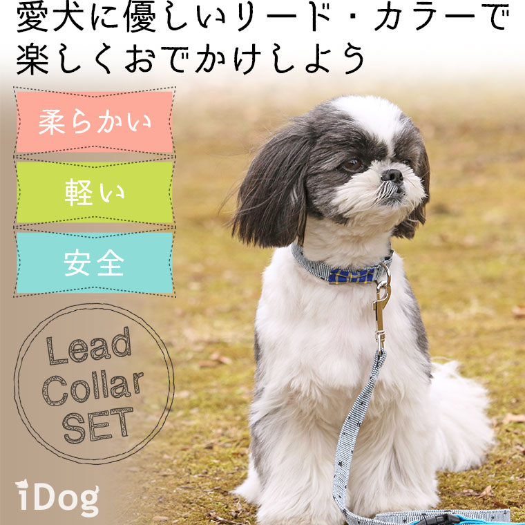 手になじみ使いやすい柔らかな布製リードと、同素材の首輪のセットになっています。
